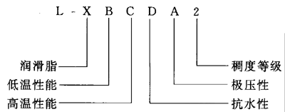 例:L-XEGHB2表示低溫-40℃,高溫180℃,在水洗條件下對(duì)淡水防銹,極壓型,稠度等級(jí)為2。