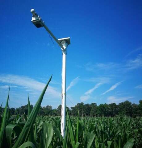 作物與土壤科學系的計算機視覺和機器學習專家Paula Ramos-Giraldo在過去的一年中一直在研究一種攝像頭系統(tǒng),該系統(tǒng)的成本低于普通智能手表,用于追蹤玉米和大豆田的干旱壓力。