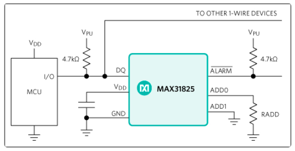 MAX31825應用實例。圖片由Maxim Integrated提供