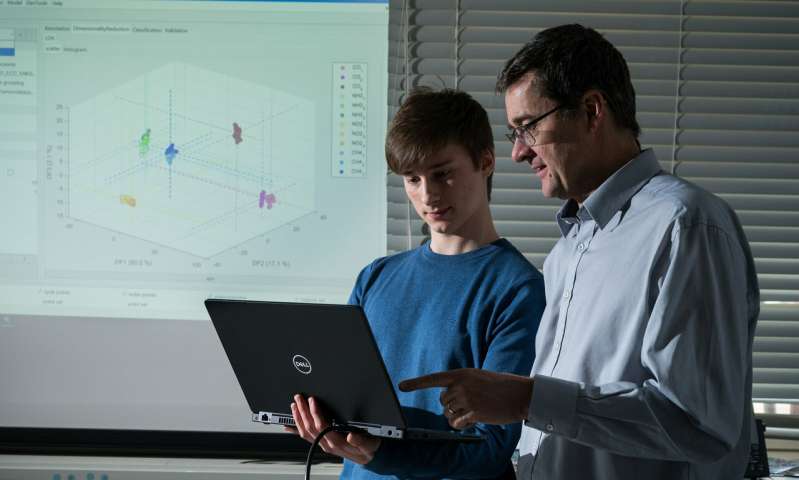 開源軟件“ Dave”:數(shù)據(jù)可視化(如背景所示)幫助AndreasSchütze教授(右)和研究助理Julian Joppich(左)以交互方式優(yōu)化測(cè)量系統(tǒng)。圖片來源:Oliver Dietze