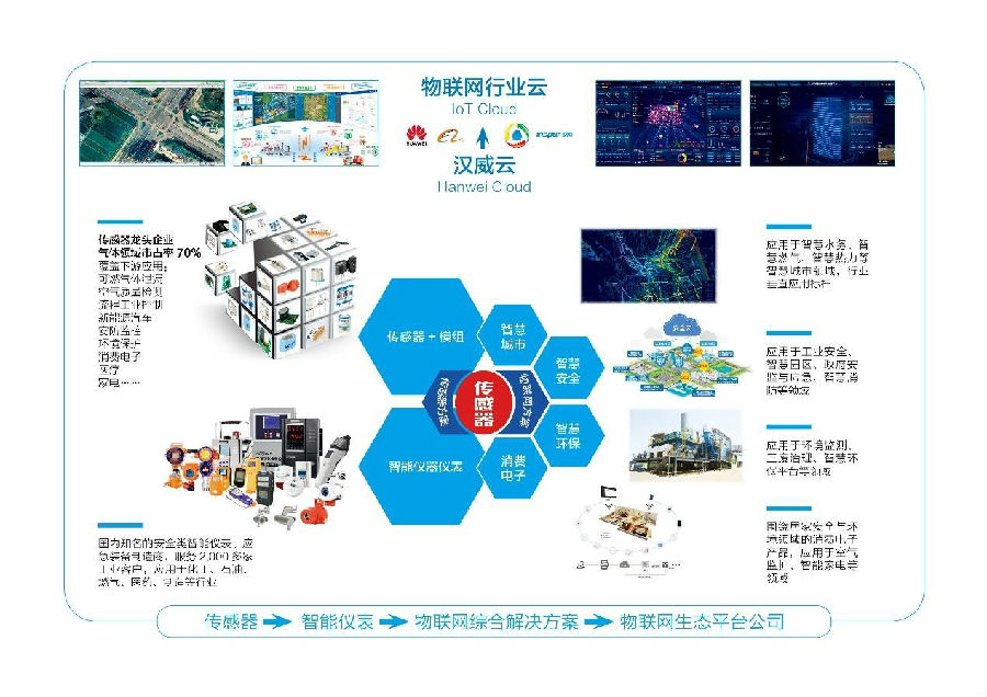 多年以來,漢威科技的技術(shù)骨干們從將國外的先進技術(shù)進行拆解、學(xué)習(xí)的基礎(chǔ)上進行創(chuàng)新、調(diào)整出發(fā),到從單一傳感器到全品類傳感器的獨立開發(fā)與制造,再到將產(chǎn)業(yè)鏈延長至下游,實現(xiàn)氣體檢測儀器儀表的產(chǎn)品全鏈路布局。漢威科技又把握住市場機遇與時代脈搏,入局發(fā)展物聯(lián)網(wǎng),目前已擁有城市生命線監(jiān)測預(yù)警平臺、智慧安全、智慧環(huán)保、智慧燃氣、智慧水務(wù)、智慧消防、居家智能與健康等一系列成熟的物聯(lián)網(wǎng)解決方案,廣泛應(yīng)用于工業(yè)安全、環(huán)境監(jiān)測、燃氣、供排水、消防、交通、熱力、危化品監(jiān)管、綜合管廊、居家健康等各個領(lǐng)域。
