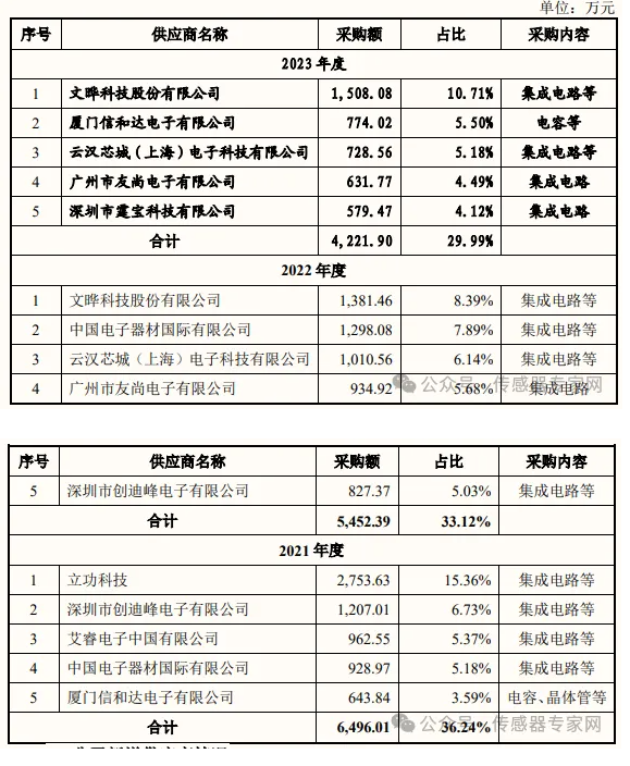 據(jù)招股書(shū)顯示,三大業(yè)務(wù)板塊中,嵌入式板卡及模塊產(chǎn)品線近三年占比均超過(guò)40%,是致遠(yuǎn)電子營(yíng)收支柱,2023年度營(yíng)收1.93億元;CAN-bus 總線通訊類產(chǎn)品線營(yíng)收占比30%左右,為第二大產(chǎn)品線,2023年度營(yíng)收1.54億元;測(cè)試測(cè)量分析儀器產(chǎn)品線占比20%左右,2023年度營(yíng)收1.23億元。 ▲來(lái)源:致遠(yuǎn)電子招股書(shū) 主要財(cái)務(wù)指標(biāo)方面,2021-2023年報(bào)告期內(nèi),公司營(yíng)業(yè)收入分別為 41,460.67 萬(wàn)元、48,451.54 萬(wàn)元和 47,731.37 萬(wàn)元,實(shí)現(xiàn)凈利潤(rùn)分別為 12,586.98 萬(wàn)元、15,758.05 萬(wàn)元和12,090.00 萬(wàn)元。 總體上看,致遠(yuǎn)電子營(yíng)收呈上升趨勢(shì),其中2023年?duì)I收略有下滑,招股書(shū)稱受新能源汽車、光伏儲(chǔ)能等下游行業(yè)需求景氣等因素影響,且2022年度CAN-bus總線通訊類產(chǎn)品線、測(cè)試測(cè)量分析儀器產(chǎn)品線收入增長(zhǎng)較快。 ▲來(lái)源:致遠(yuǎn)電子招股書(shū) 本次IPO中,致遠(yuǎn)電子擬向社會(huì)公眾公開(kāi) 發(fā)行人民幣普通股不超過(guò) 2,000.00 萬(wàn)股,擬募集資金為8億元,將投入到新一代工業(yè)智能物聯(lián)產(chǎn)品研發(fā)項(xiàng)目 、EsDA 平臺(tái)升級(jí)研發(fā)項(xiàng)目、制造中心升級(jí)項(xiàng)目以及補(bǔ)充流動(dòng)資金。 值得一提的是,致遠(yuǎn)電子是國(guó)內(nèi)少數(shù)自建物聯(lián)網(wǎng)操作系統(tǒng)及開(kāi)發(fā)生態(tài)的中國(guó)物聯(lián)網(wǎng)企業(yè),其物聯(lián)網(wǎng)生態(tài)稱為EsDA生態(tài)(Embeded system Design Automation,嵌入式系統(tǒng)設(shè)計(jì)自動(dòng)化技術(shù)生態(tài)),包括AWorksLP 物聯(lián)網(wǎng)實(shí)時(shí)操作系 統(tǒng)、AWStudio 嵌入式應(yīng)用可視化開(kāi)發(fā)平臺(tái)、AXPI 資源管理平臺(tái)、AWTK GUI 引擎及ZWS物聯(lián)網(wǎng)云平臺(tái)等自研技術(shù)平臺(tái):致遠(yuǎn)電子EsDA生態(tài)涵蓋技術(shù)優(yōu)勢(shì)有: 目前,致遠(yuǎn)電子的產(chǎn)品已進(jìn)入比亞迪、寧德時(shí)代、陽(yáng)光電源、天地科技、魚(yú)躍醫(yī)療等知名行業(yè)客戶供應(yīng)鏈體系 ,其中,近三年,比亞迪均是致遠(yuǎn)電子前五大客戶之一。 此外,致遠(yuǎn)電子前五大客戶還有北漢科技、微丹電子、京東數(shù)智工業(yè)、旭儀科技等。 采購(gòu)方面,致遠(yuǎn)電子采購(gòu)原料來(lái)自NXP、TI、ADI、ISSI、XILINX、納芯微、思瑞浦、瑞芯微、復(fù)旦微、興森科技等國(guó)內(nèi)外知名半導(dǎo)體廠商或其代理商。 致遠(yuǎn)電子主要采購(gòu)產(chǎn)品為集成電路,前五大供應(yīng)商涵蓋多家知名電子元件分銷商,包括文曄科技、信和達(dá)電子、云漢芯城、中電器材(中電港)等。 實(shí)控人夫婦IPO前夕已協(xié)議離婚,三輪問(wèn)詢,獨(dú)立性等多個(gè)問(wèn)題被審議 據(jù)招股書(shū)股權(quán)結(jié)構(gòu)顯示,目前致遠(yuǎn)電子實(shí)控人為周立功、陳智紅,二人合計(jì)占據(jù),持有發(fā)行人 76.96%的股權(quán),為發(fā)行人控股 股東、實(shí)際控制人,致贏投資、立功科技、廣州求遠(yuǎn)系實(shí)際控制人的一致行動(dòng)人。 其中,周立功、陳智紅直接持有發(fā)行人 35.81%、 31.84%的股權(quán),通過(guò)持有致贏投資、立功科技、廣州求遠(yuǎn)的股權(quán)而間接持有發(fā)行人 2.68%、6.63%的股權(quán)。 此前,周立功、陳智紅二人系夫婦關(guān)系,于 2022 年 3 月 2 日協(xié)議離婚,但通過(guò)簽署《一致行動(dòng)協(xié)議》,保證了公司控制權(quán)結(jié)構(gòu)的穩(wěn)定性。 值得關(guān)注的是,致遠(yuǎn)電子曾是立功科技的全資子公司,立功科技于1999年成立,2020年7月立功科技沖擊上市,后撤回IPO申請(qǐng)。 此后,致遠(yuǎn)電子從立功科技脫離,尋求獨(dú)立上市:2022年5月,經(jīng)股東一致同意后公司正式變更為現(xiàn)今的“廣州致遠(yuǎn)電子股份有限公司”。
