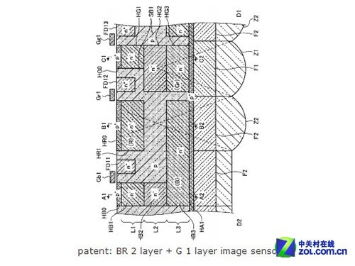 因而可以理解為這是一款混合式的傳感器設(shè)計,一層為傳統(tǒng)拜耳傳感器設(shè)計的紅藍(lán)像素層,一層則為foveon的綠色層,也就是X3+馬賽克設(shè)計。這樣的好處是將最影響傳感器感光度的綠色層獨立出來,從而提高綠色的采集效率,因而新傳感器的感光性能應(yīng)該更好。我們期待這項專利能夠盡早實用化,相信屆時相機(jī)的高感性能將得到進(jìn)一步提升。