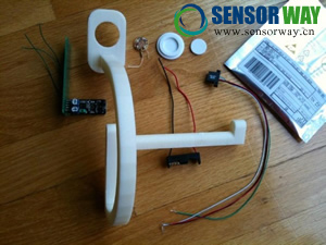 當(dāng)手紙架上的衛(wèi)生紙即將要用完的時(shí)候,發(fā)射器和傳感器就會(huì)通過上面的圓形黃燈發(fā)出警報(bào)。