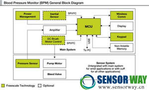 血壓計的基本功能是測量動脈壁的壓力。其中一個獲得該測量數(shù)據(jù)的方法是使用一個可測量當前壓力的壓力傳感器。血壓的不斷變化改變了控制空氣泵的電機的速率。氣囊壓向胳膊,使其產(chǎn)生收縮壓。當達到收縮壓時,圍繞在胳膊上的氣門會漸漸釋放空氣。同時,壓力傳感器會進行測量。