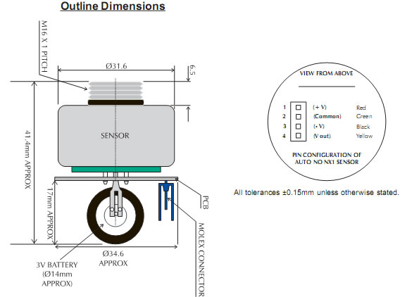 |  | NX1一氧化氮傳感器 | 0.05 ± 0.01 µA/ppm | 0-5000ppm |